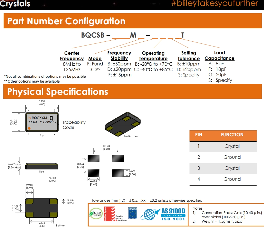6G無線設備晶振,美國百利石英晶振,BQCSB-12MF-DCDT 參數表