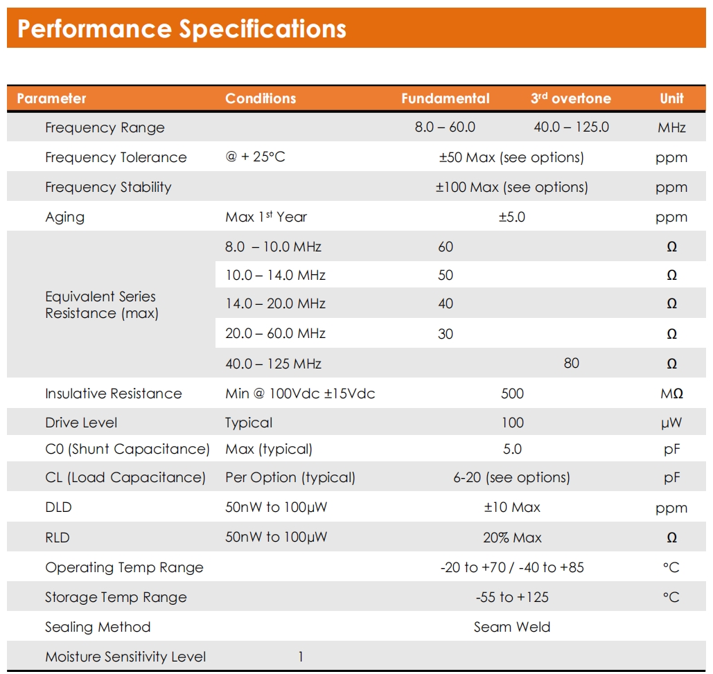 Aging | Max 1st Year ±5.0 ppm | ||||||||||||||||||||||||