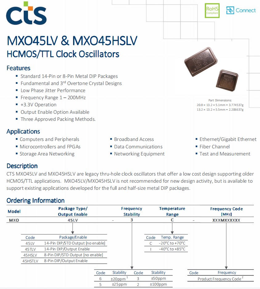 MXO45HSLV-3C-45M0000,6G網(wǎng)絡(luò)設(shè)備晶振,CTS西迪斯晶振