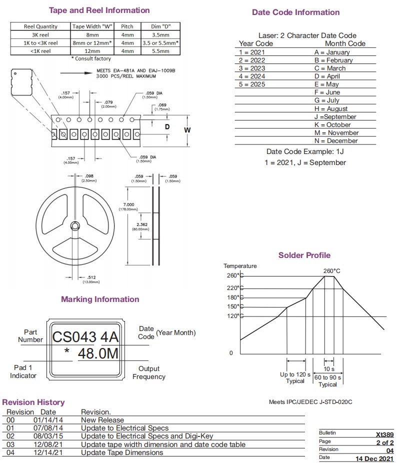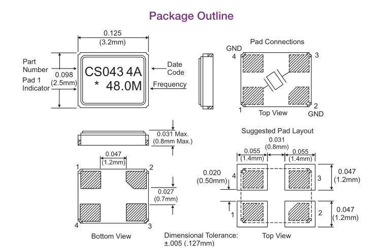 6G合成器應(yīng)用晶振,CS-043-048.0M,ConnorWinfield晶體諧振器,CS-034-040.0M,四腳貼片晶振,尺寸圖
