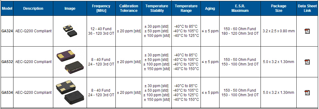 晶振規格參數 | GA534 | |