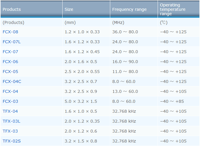 頻率穩定度公差(工作溫度范圍,引用到25°C閱讀) | ±15 ppm,±20 ppm, ±30 ppm,±50 ppm | |