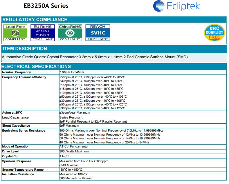 日蝕晶振,EB3250A石英諧振器,EB3250AXA20-26.000M-TR晶振,ECLIPTEK晶振公司是一家專注于為我們的市場提供高質量進口晶振產品系列產品的公司。我們的目標是通過提供無與倫比的客戶服務和對客戶、員工和供應商的長期承諾,穩步發展。