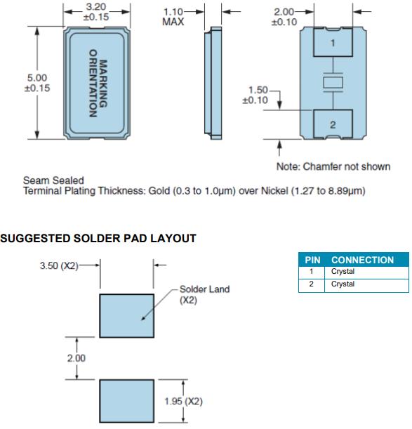 在一個不同擴張系數電路板(環氧玻璃)上焊接陶瓷封裝石英晶振時,在溫度長時間重復變化時可能導致端子焊接部分發生斷裂,請事先檢查焊接特性。