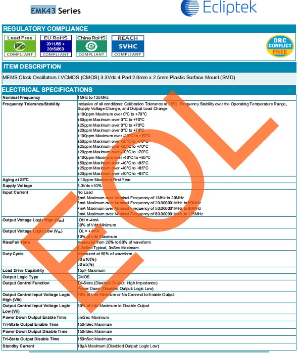 ECLIPTEK晶振,EMK43石英振蕩器,EMK43H2H-24.000M-TR晶振,ECLIPTEK晶振公司是一家專注于為我們的市場提供高質(zhì)量進口晶振產(chǎn)品系列產(chǎn)品的公司。我們的目標(biāo)是通過提供無與倫比的客戶服務(wù)和對客戶、員工和供應(yīng)商的長期承諾,穩(wěn)步發(fā)展。