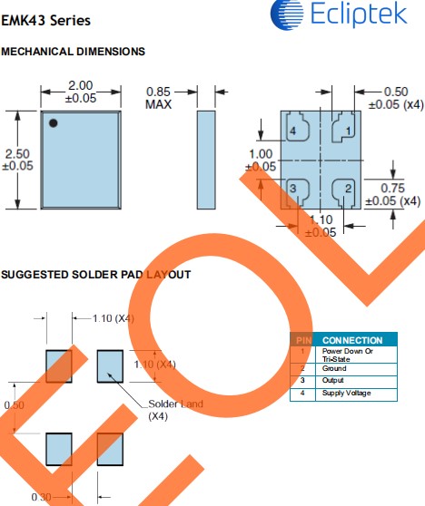 ECLIPTEK晶振,EMK43石英振蕩器,EMK43H2H-24.000M-TR晶振,ECLIPTEK晶振公司成立于1987年,是一家在頻率控制市場上公認(rèn)的市場領(lǐng)導(dǎo)者。我們最先進的產(chǎn)品和領(lǐng)先的前沿技術(shù)使我們能夠為我們的客戶提供最好的貼片石英晶振和石英振蕩器產(chǎn)品。服務(wù)是ECLIPTEK無源貼片晶體成功的基石。我們考慮客戶的合作伙伴,努力滿足并超越他們對質(zhì)量、客戶服務(wù)和價值的要求。公司擁有專業(yè)的技術(shù)支持和全面的質(zhì)量計劃,使其成為行業(yè)最優(yōu)秀的頻率控制產(chǎn)品資源。