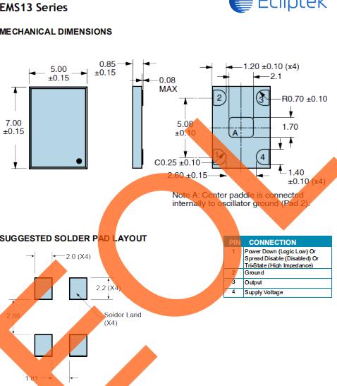 當晶振產品上存在任何給定沖擊或受到周期性機械振動時,比如:壓電揚聲器,壓電蜂鳴器,以及喇叭等,輸出頻率和幅度會受到影響.這種現象對通信器材通信質量有影響.盡管SMD晶振產品設計可最小化這種機械振動的影響,我們推薦事先檢查并按照下列安裝指南進行操作. EMS13時鐘振蕩器,ECLIPTEK日蝕晶振,EMS13CHA-16.000M-TR晶振.