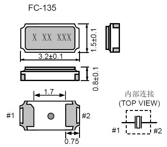 EPSON晶振FC-135,Q13FC1350000800水晶振動子 尺寸圖