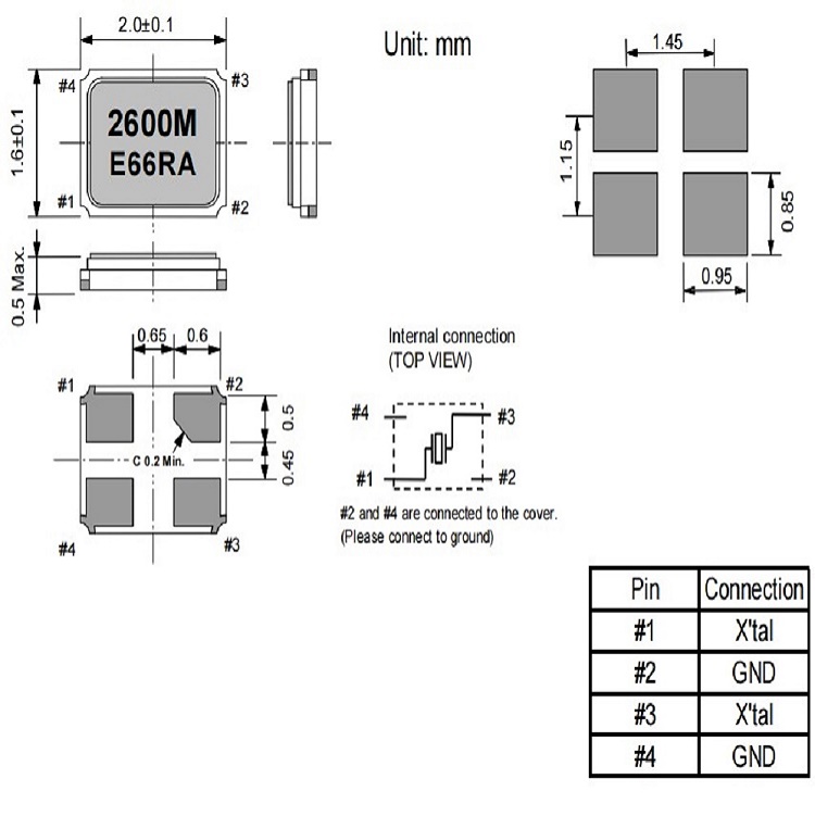 包裝尺寸:2.0x1.6mm, t=0.5mmMax。