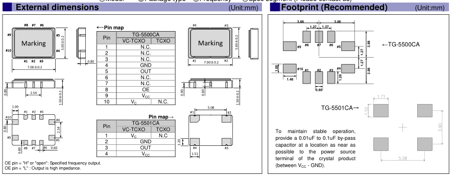 X1G0039010107 | TG-5501CA | 25.000000 MHz | 7.00 x 5.00 x 1.50 mm | Clipped sine wave | 3.135 to 3.465 V | +/-1.0 ppm | -40 to +85 °C |