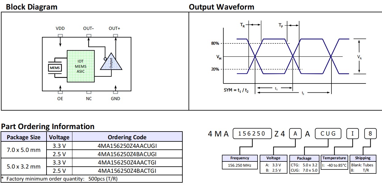 4MA066000Z3AACTGI8 | Renesas晶振 | MEMS OSC XO 66.0000MHZ LVPECL |