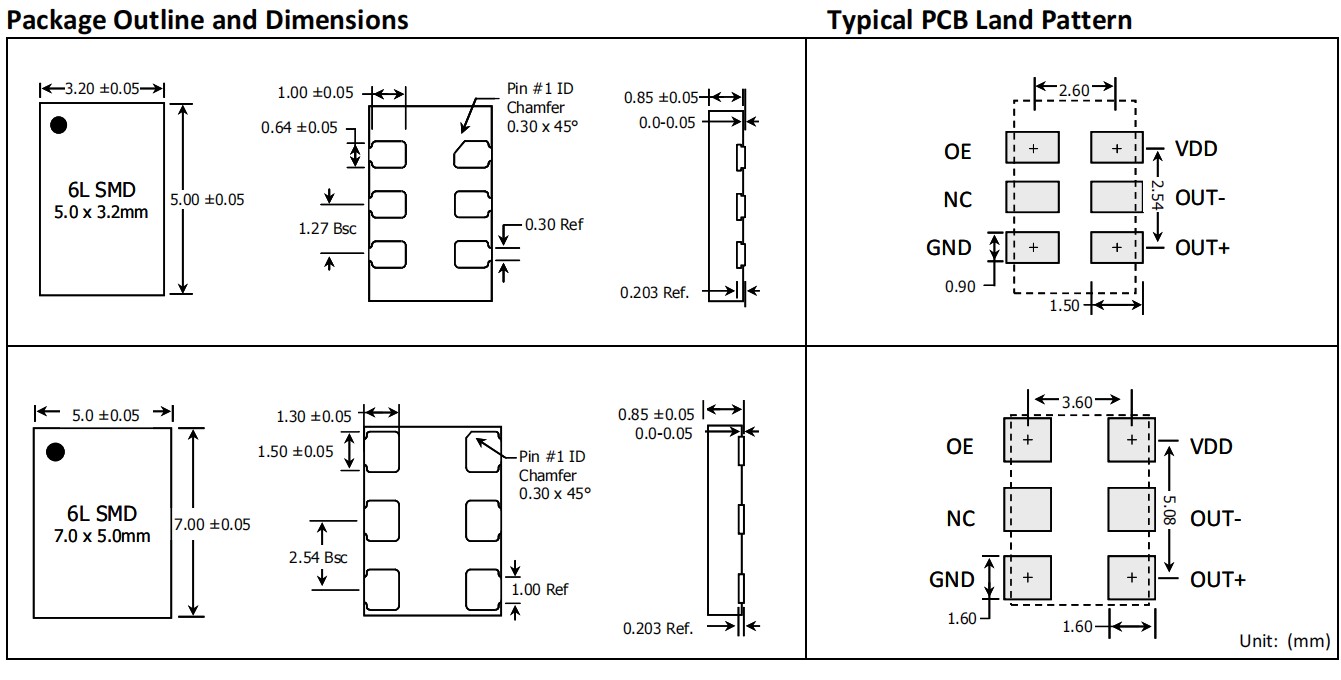 6G光纖通訊晶振,4MA066000Z3AACTGI,瑞薩LVPECL差分晶振,高性能晶振,超小型晶振,尺寸圖