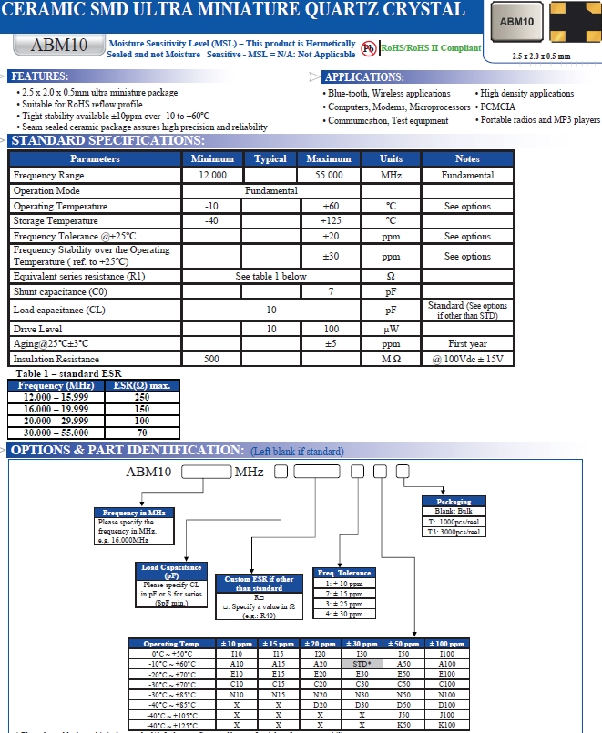 Abracon晶振,ABM10-16.000MHZ-E20-T無源晶振,ABM10諧振器