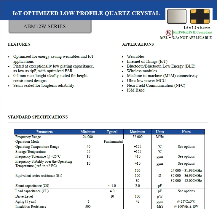 制造商 | 艾博康晶振 | 產地 | 美國 | 產品編碼 | ABM12-115-26.000MHZ-T3 |