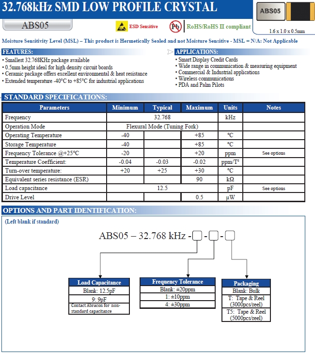Abracon晶振 | 單位 | ABS05晶振 | 石英晶振基本條件 |