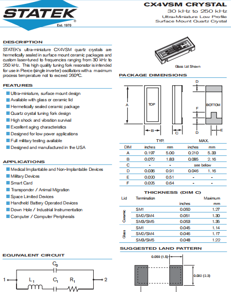 STATEK晶振 | 單位 | CX4VSM晶振 | 石英晶振基本條件 |