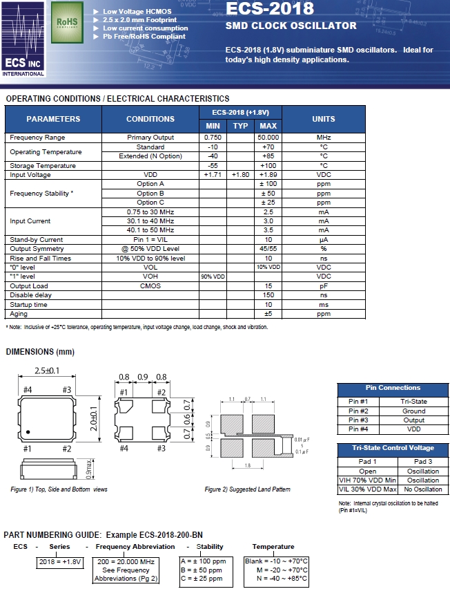 ECS晶振,ECS-2018-130-BN壓電晶振,ECS-2018振蕩器.貼片石英晶體,體積小,焊接可采用自動貼片系統(tǒng),產(chǎn)品本身小型,表面貼片晶振,特別適用于有小型化要求的電子數(shù)碼產(chǎn)品市場領(lǐng)域,因產(chǎn)品小型,薄型優(yōu)勢,耐環(huán)境特性,包括耐高溫,耐沖擊性等,在移動通信領(lǐng)域得到了廣泛的應(yīng)用,晶振產(chǎn)品本身可發(fā)揮優(yōu)良的電氣特性,滿足無鉛焊接的高溫回流溫度曲線要求.