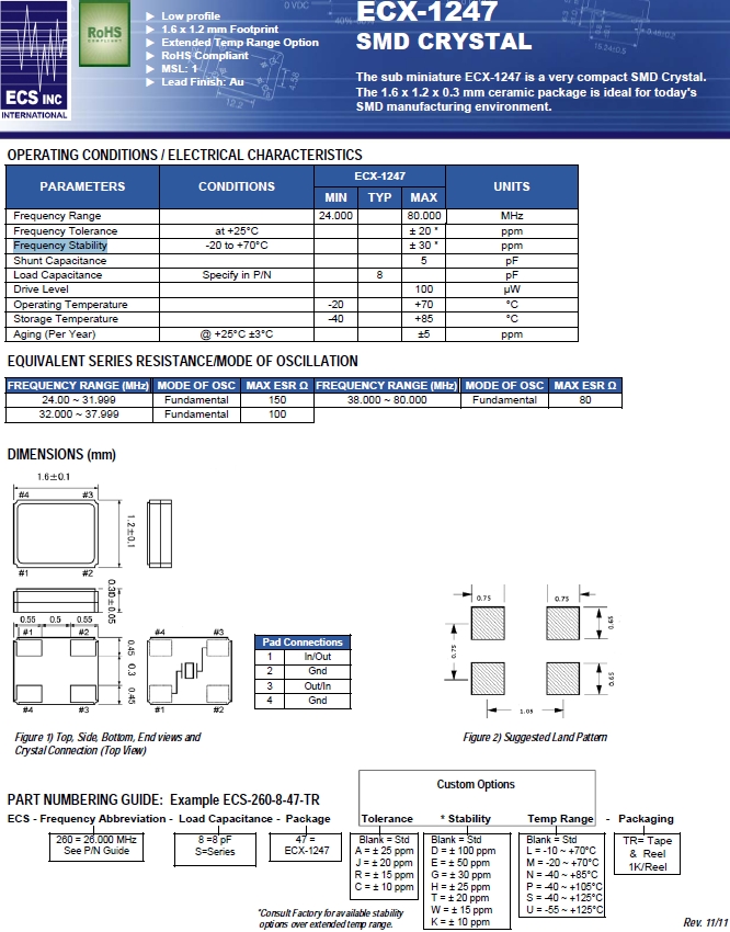 ECS晶振 | 單位 | ECX-1247晶振 | 石英晶振基本條件 |