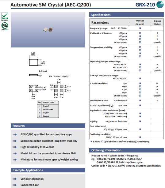 Golledge晶振 | 單位 | GRX-210晶振 | 石英晶振基本條件 |