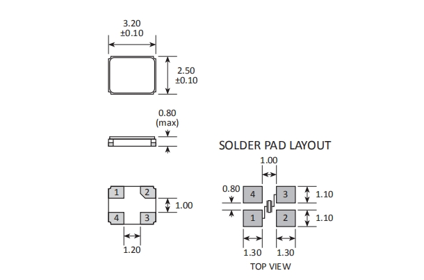 頻率溫度特征 | f_tem | ±50× 10-6 /-30°C~+85°C | 超出標準的規格請聯系我們. |