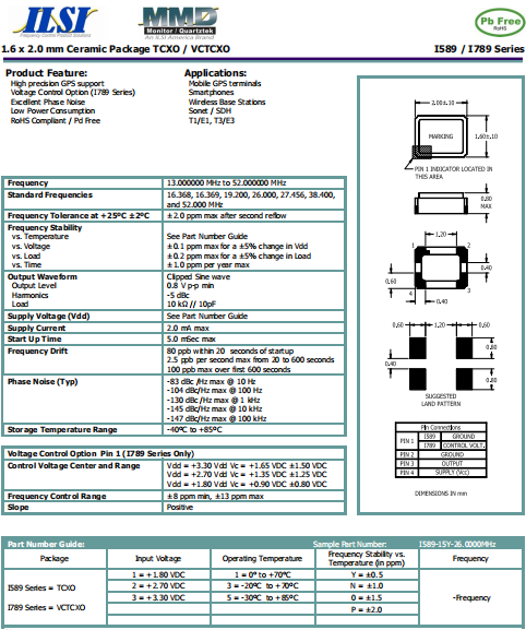 ILSI晶振,I789晶振,高質量振蕩器.智能手機晶振,產品具有高精度超小型的表面貼片型石英晶體振蕩器,最適用于移動通信終端的基準時鐘等移動通信領域.比如智能手機,無線通信,衛星導航,平臺基站等較高端的數碼產品,晶振本身小型,薄型具備各類移動通信的基準時鐘源用頻率,貼片晶振具有優良的電氣特性,耐環境性能適用于移動通信領域,滿足無鉛焊接的高溫回流溫度曲線要求.