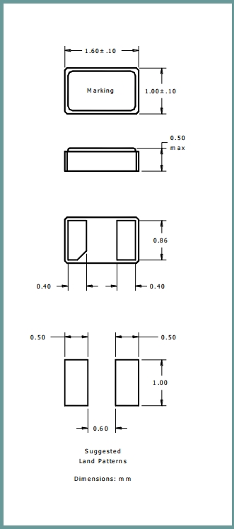 頻率溫度特征 | f_tem | ±50× 10-6 /-30°C~+85°C | 超出標準的規格請聯系我們. |