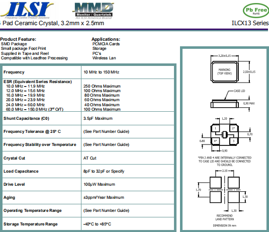 ILSI晶振 | 單位 | ILCX13晶振 | 石英晶振基本條件 |