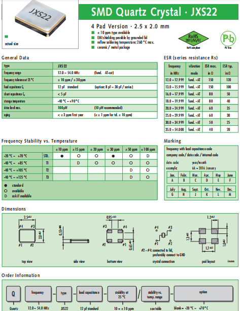 JAUCH晶振 | 單位 | JXS22晶振 | 石英晶振基本條件 |