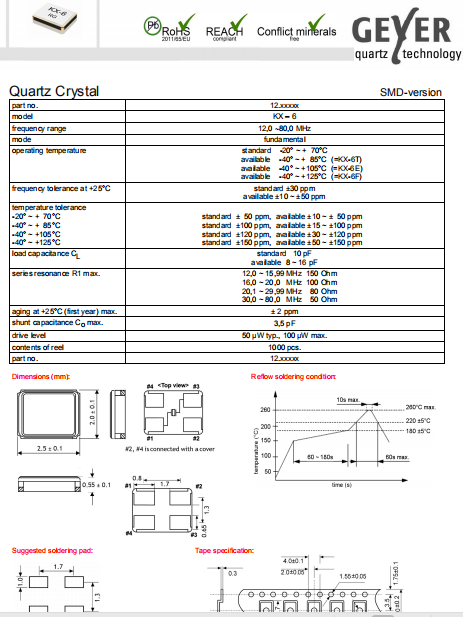 Geyer晶振 | 單位 | KX-6晶振 | 石英晶振基本條件 |
