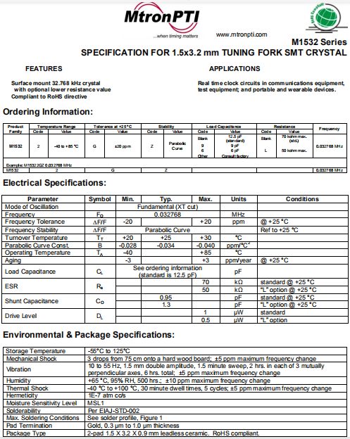 MTRONPTI晶振 | 單位 | M1532晶振 | 石英晶振基本條件 |
