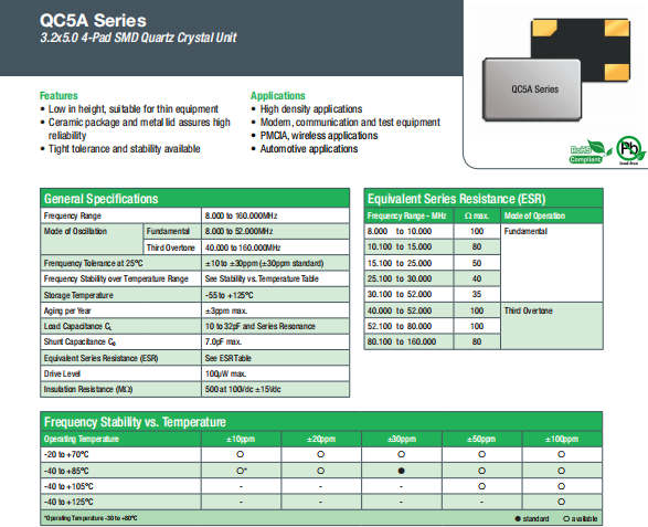 qantek晶振 | 單位 | QC5A晶振 | 石英晶振基本條件 |