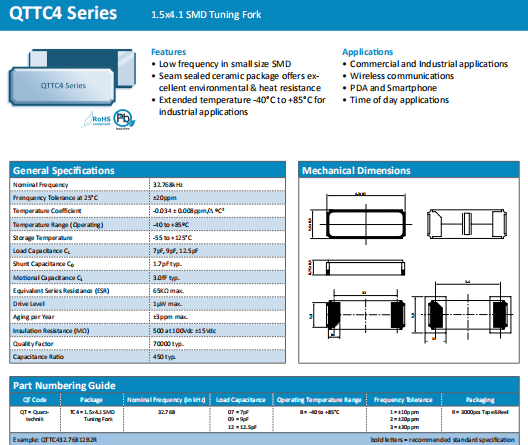 Quarztechnik晶振 | 單位 | QTTC4晶振 | 石英晶振基本條件 |