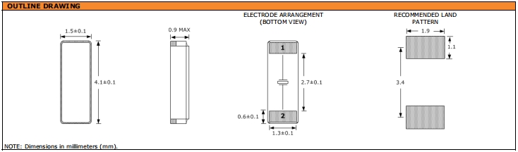 激勵功率 | DL | 1.0μW Max. | 推薦:100μW ~ 300μW |