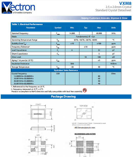 VECTRON晶振 | 單位 | VXM8晶振 | 石英晶振基本條件 |