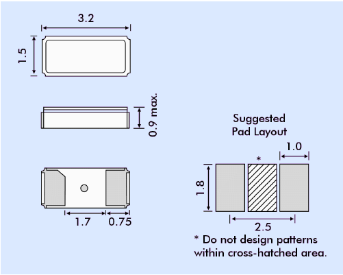 EUROQUARTZ歐洲石英晶振EQ156,32.7680 12.5 PH32768F 20/-40+85/80k,鐘表晶振,3215mm貼片晶振,手持設備晶振,尺寸圖
