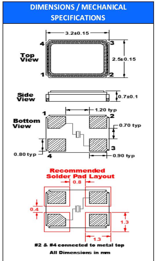 FC3BSBBGM20.0-T1,FOX晶體諧振器,FX325BS石英晶體,6G無線晶振,FC3BSECKP30.0-T1,汽車充電樁晶振,尺寸圖