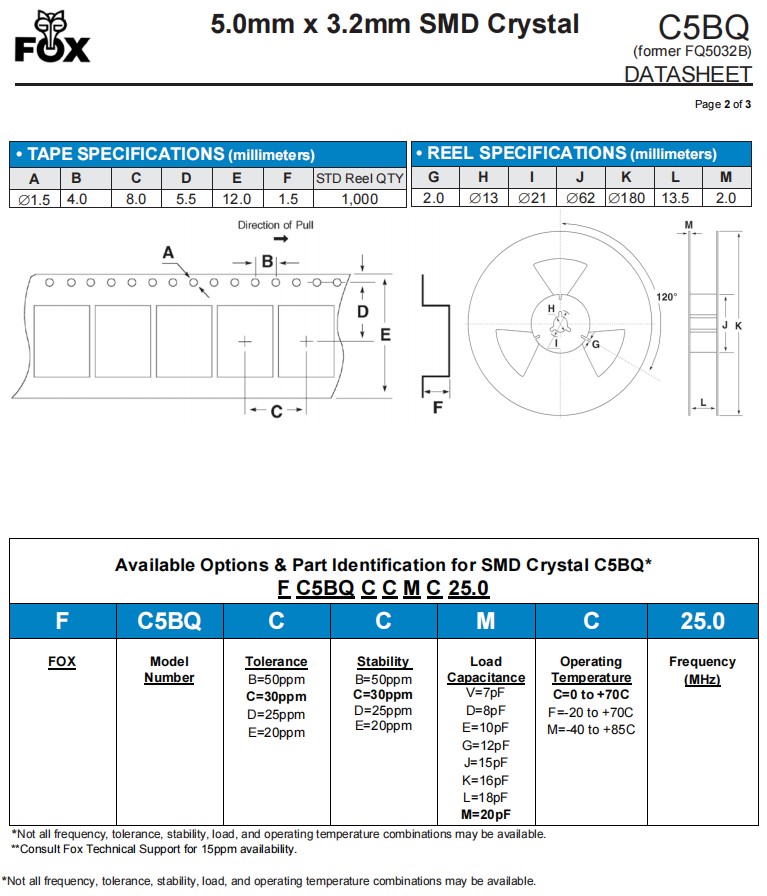 FQ5032B-25.000 | Fox晶振 | C5BQ | 25MHz | 4-SMD, No Lead | ±30ppm |