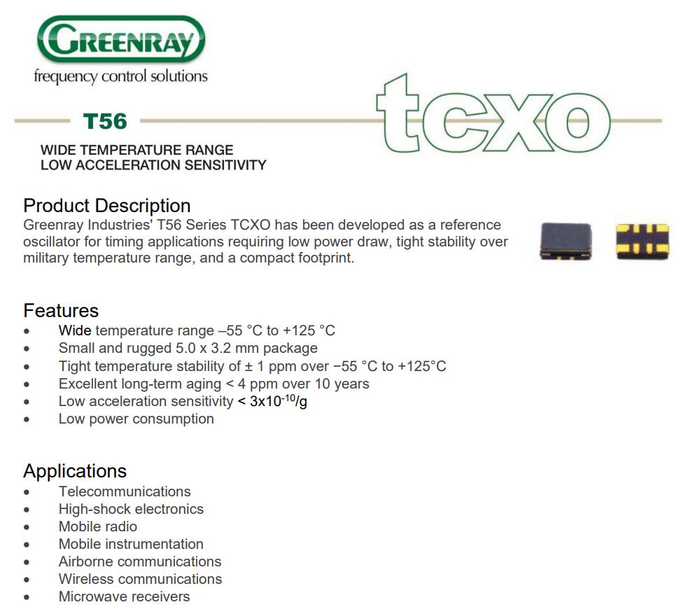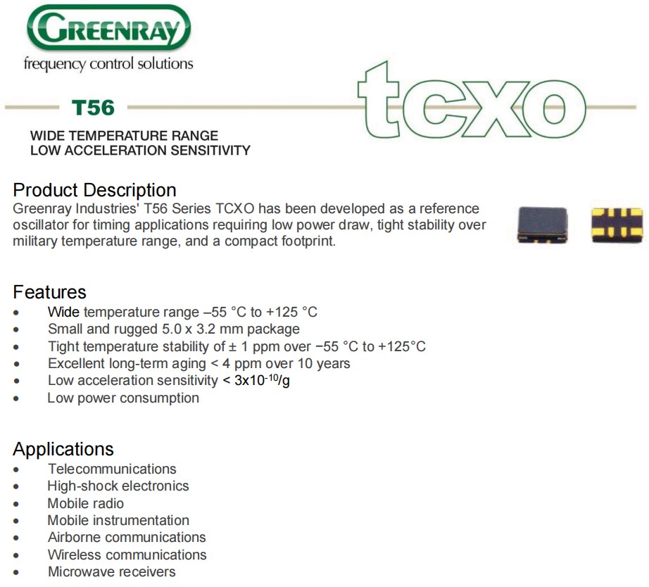 T56-J57-CS-LG-26MHz-E,5032mm,Greenray溫補(bǔ)晶振,T56,航空電子晶振