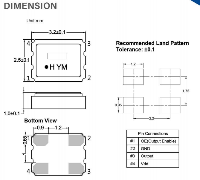 加高HSO321S有源晶振,8MHZ石英振蕩器,SSW008000I3CHE-T 尺寸圖