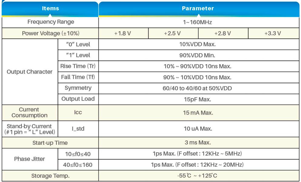 SSR050000I3CH | 加高有源晶振 | 50MHz 頻率穩定度:±50ppm 工作電壓:3V~3.6V 供電電流:25mA 工作溫度:-10℃~+70℃ | 50.000MHZ | 3V~3.6V |