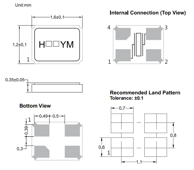 H.ELE加高無(wú)源晶振,X1CO37400BG1H-HZ,HSX111SA超小型晶振,1612貼片晶振,6G無(wú)線模塊晶振,尺寸圖