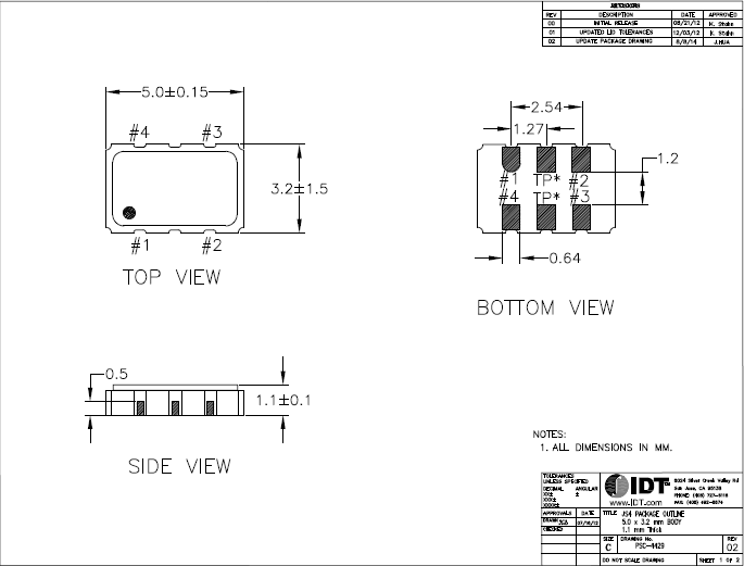 IDT HCMOS晶體振蕩器,XUH536156.250JS4I,無(wú)線模塊6G晶振,XUH736156.250JU4I,小體積晶振,尺寸圖