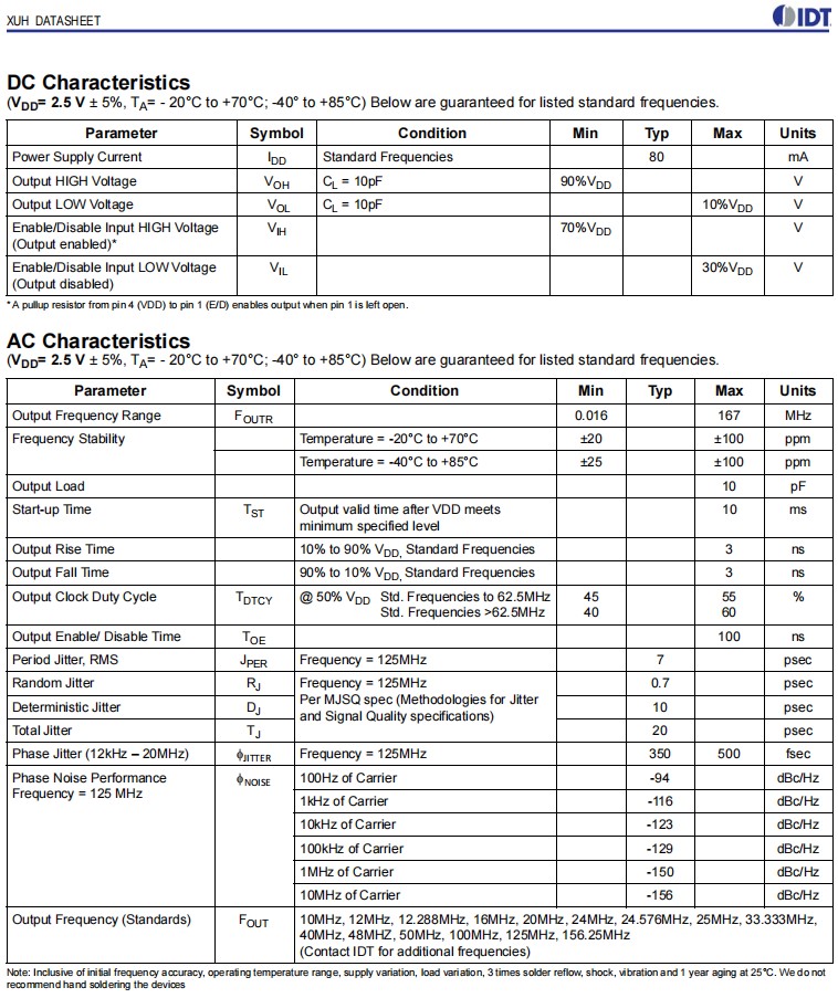 XUP535125.000JS6I8 | IDT晶振 | OSC 125MHZ 有源晶振 | XUP | 125MHz |