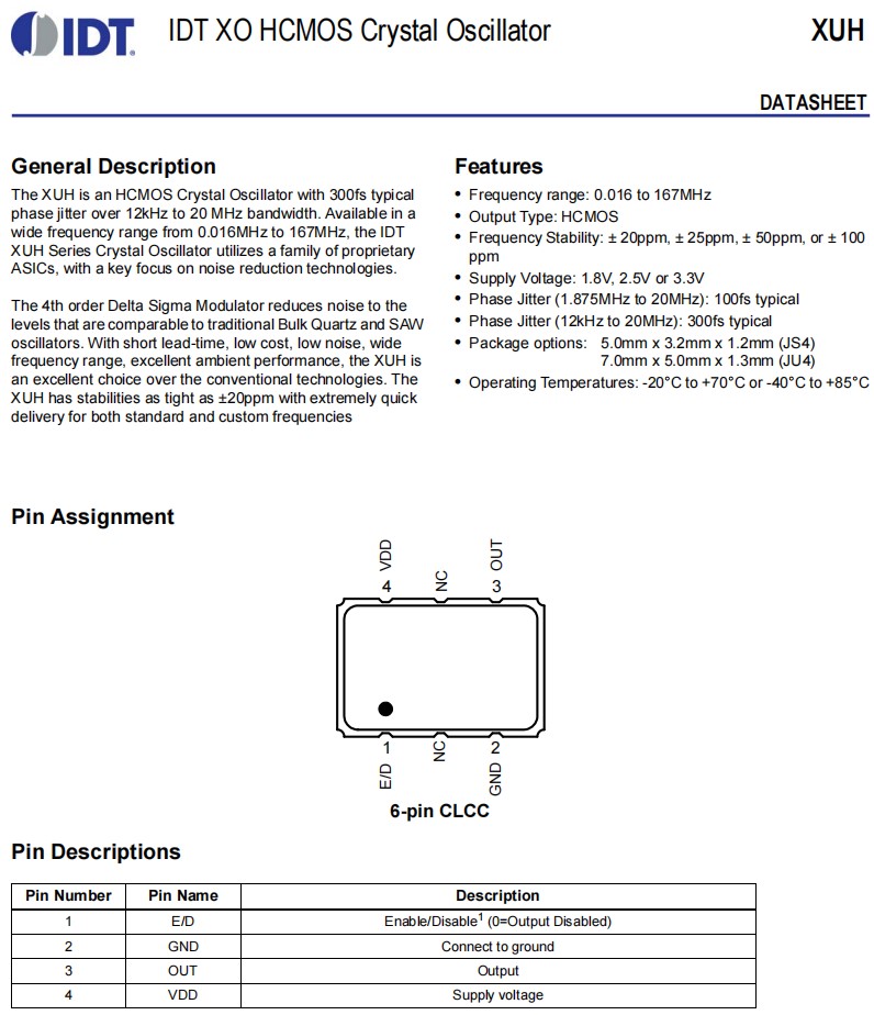 IDT HCMOS晶體振蕩器,XUH536156.250JS4I,無(wú)線模塊6G晶振,XUH736156.250JU4I,小體積晶振,參數(shù)表