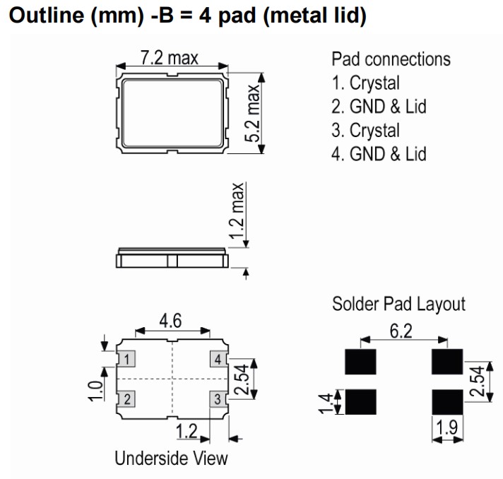 LFXTAL026394REEL,IQD石英晶體,6G網絡通訊晶振,LFXTAL026504BULK,12SMX-B貼片晶振,尺寸圖