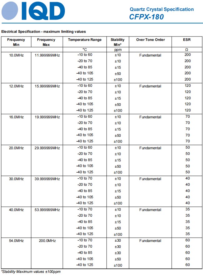 LFXTAL058124REEL | IQD晶振 | CFPX-180 | CRYSTAL 24.0000MHZ 18PF SMD | 24 MHz |