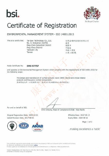- [2020-07-10]臺系TST晶振公司ISO:14001:2015...