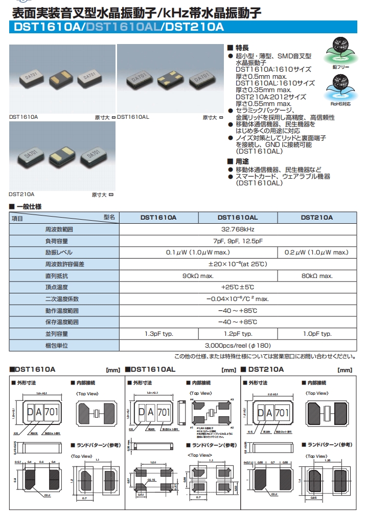 KDS晶振 | 7BG03276A3C | DST1610A | 1610 | 32.768K | 12.5PF | 20ppm | |