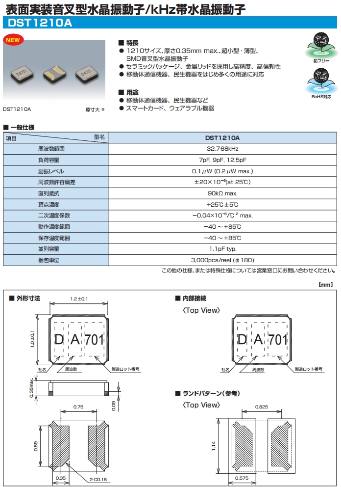 DST1210A音叉晶體,1TJN090DP1A0004,大真空32.768K晶振 參數(shù)表
