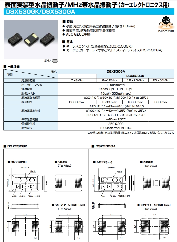 KDS晶振 | 1C710000CE1A | DSX530GA | 5032 | 10.000MHZ | ||